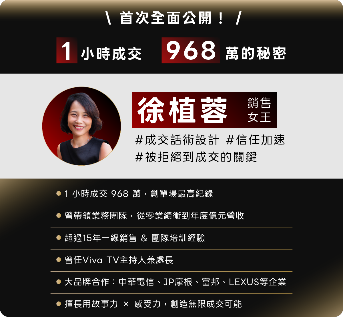 擁有多年的頂級客戶服務經驗,及購物台節目銷售兼企劃與自創公司的背景,透過她過往精湛的銷售力,將為銷售/業務/行銷人員提供最實用的心法與策略。